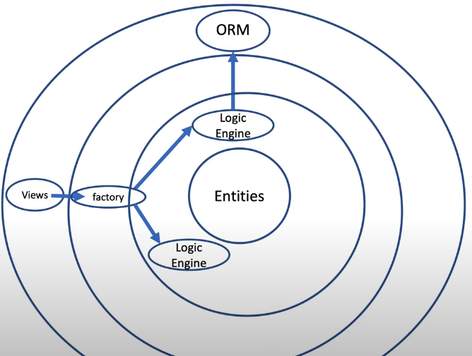 view는 factory를 통해 비즈니스 로직에 접근한다. 그 후 비즈니스 로직은 orm에 접근한다.