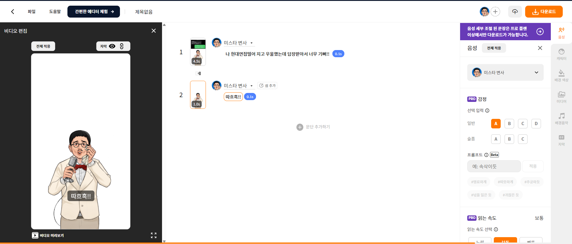 미스터 변사 목소리를 이용해서 쇼츠를 만들어 보자